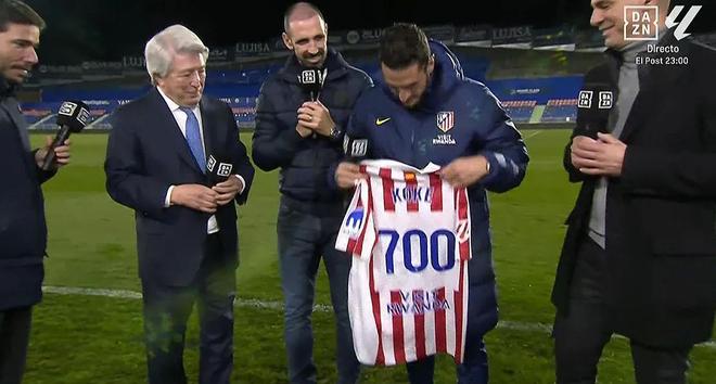在客场对阵赫塔菲的比赛中,马德里竞技队长科克庆祝了为俱乐部效力的第700场比赛,成为球队历史上第一位达到这一里程碑的球员。赛后,科克从塞雷索总统手中接过了一件球衣,以纪念他参加比赛第700场比赛,并接受了DAZN的采访。我很高兴我赢得了 700 场比赛。这是一种奇怪的感觉,这可能不是有史以来最好的比赛,但此刻我想到了我的家人、几代俱乐部工作人员以及所有一直在我身边的人。感谢他们,我才有了今天。我现在的角色就是我平时说的。只要教练和球队需要我,我就会尽力发挥重要作用,无论是两分钟还是90分钟,无论我是否上场。这就是我们接受分配给我们的角色的心态。如果他们能够像今天一样获胜,马德里竞技就有机会争夺冠军。当然这个,如果我们想和皇马、巴萨、比利亚雷亚尔竞争的话,我们就得赢得这些比赛。我们知道这场比赛不会轻松,因为赫塔菲踢得很慢,但表现很好。他最终能为马德里竞技踢多少场比赛?我之所以有今天的成绩,是因为我没有设定自己的数字。我专注于日常工作和明天的训练。